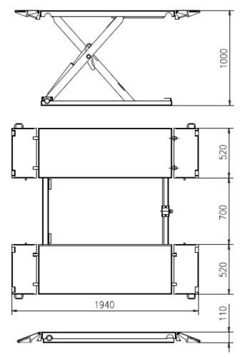 Scherenhebebühne 3000kg max 100cm min 11cm 2200W Autohebebühne Scheren Hebebühne