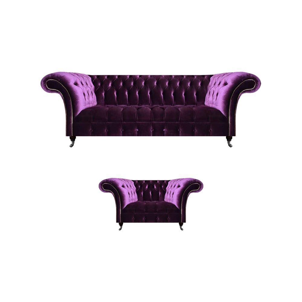 Schicke Chesterfield Lila Polstercouch Wohnzimmer Sessel Luxus Möbel