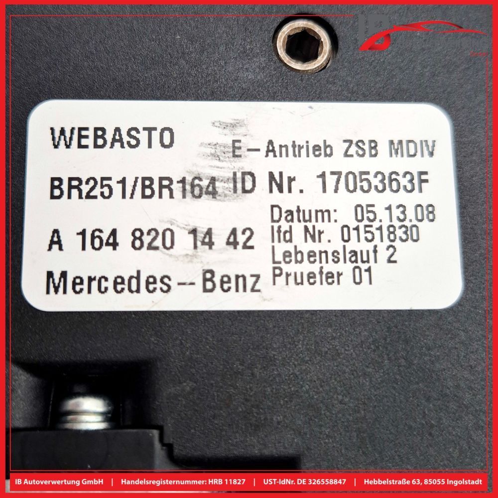 Schiebedach Motor A1648201442 Mercedes R-KLASSE W251 R320 CDI 4M Webasto