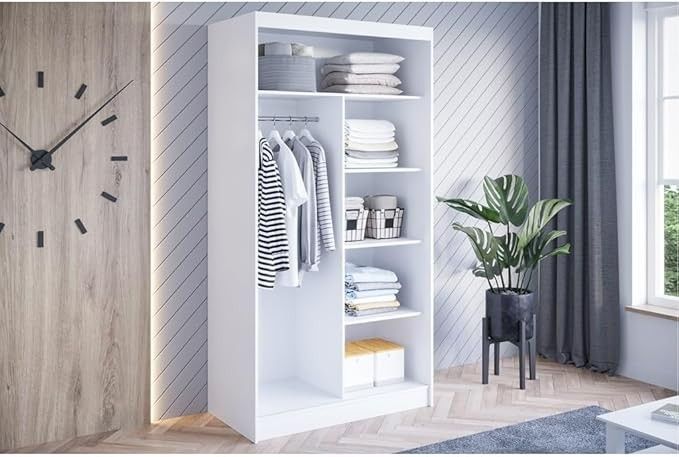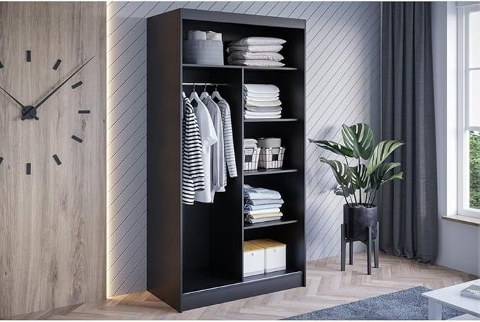 SCHNELLE LIEFERUNG BESTE QUALITÄT KOSTENLOSE LIEFERUNG Schiebeschrank N5 - 100 cm - WEISS SCHWARZ WEISS+SCHWARZ SONOMA+WEISS BESTSELLER ARTIKELBESCHREIBUNG Schiebetürenschrank mit maximaler Kapazität fügt sich perfekt in den Raum des heimischen Ankleidezimmers ein. Durch die Verwendung von Regalfäch