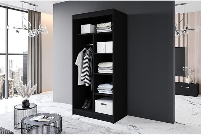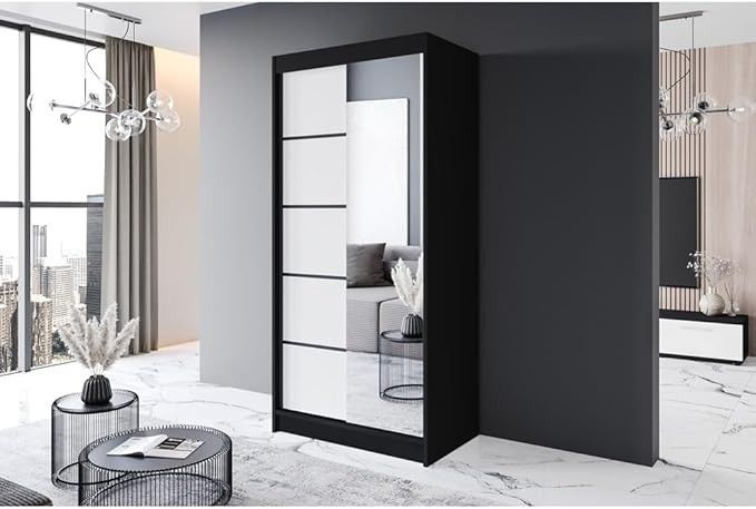 SCHNELLE LIEFERUNG BESTE QUALITÄT KOSTENLOSE LIEFERUNG Schiebeschrank P3 - 100 cm - SCHWARZ WEISS+SCHWARZ SCHWARZ+WEISS BESTSELLER ARTIKELBESCHREIBUNG Schiebetürenschrank mit maximaler Kapazität fügt sich perfekt in den Raum des heimischen Ankleidezimmers ein. Durch die Verwendung von Regalfächern,