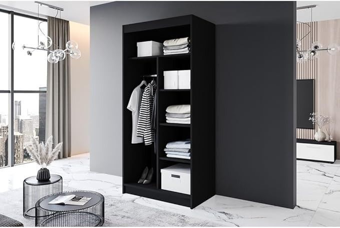 SCHNELLE LIEFERUNG BESTE QUALITÄT KOSTENLOSE LIEFERUNG Schiebeschrank P4 - 100 cm - WEISS SCHWARZ SCHWARZ+WEISS WEISS+SCHWARZ BESTSELLER ARTIKELBESCHREIBUNG Schiebetürenschrank mit maximaler Kapazität fügt sich perfekt in den Raum des heimischen Ankleidezimmers ein. Durch die Verwendung von Regalfäc