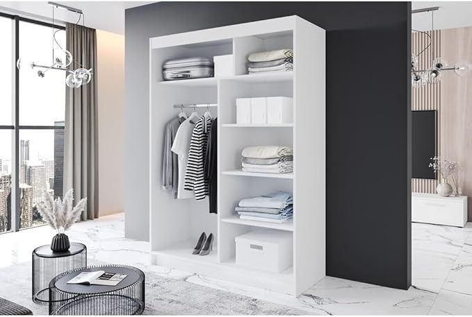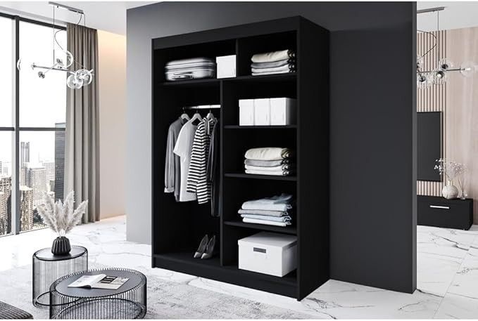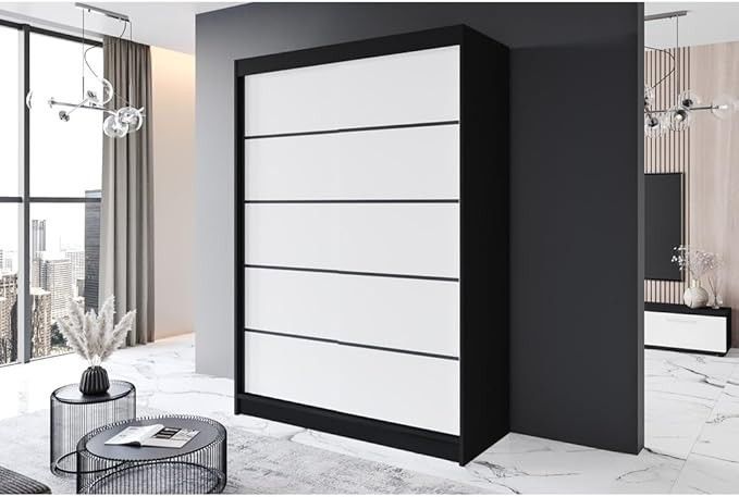 SCHNELLE LIEFERUNG BESTE QUALITÄT KOSTENLOSE LIEFERUNG Schiebeschrank P4 - 150 cm - WEISS SCHWARZ WEISS+SCHWARZ SCHWARZ+WEISS BESTSELLER ARTIKELBESCHREIBUNG Schiebetürenschrank mit maximaler Kapazität fügt sich perfekt in den Raum des heimischen Ankleidezimmers ein. Durch die Verwendung von Regalfäc