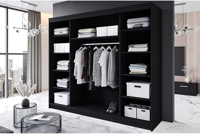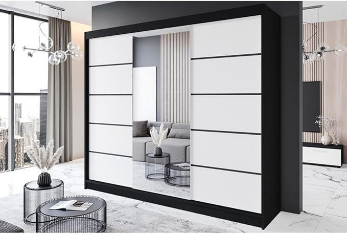 SCHNELLE LIEFERUNG BESTE QUALITÄT KOSTENLOSE LIEFERUNG Schiebeschrank R6 - 250 cm - WEISS SCHWARZ WEISS+SCHWARZ SCHWARZ+WEISS BESTSELLER ARTIKELBESCHREIBUNG Schiebetürenschrank mit maximaler Kapazität fügt sich perfekt in den Raum des heimischen Ankleidezimmers ein. Durch die Verwendung von Regalfäc
