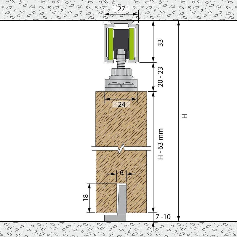 Schiebetürbeschlag SLID'UP 1000, 1 Tür bis 40 kg, 195 cm, hydraulischer Stopper