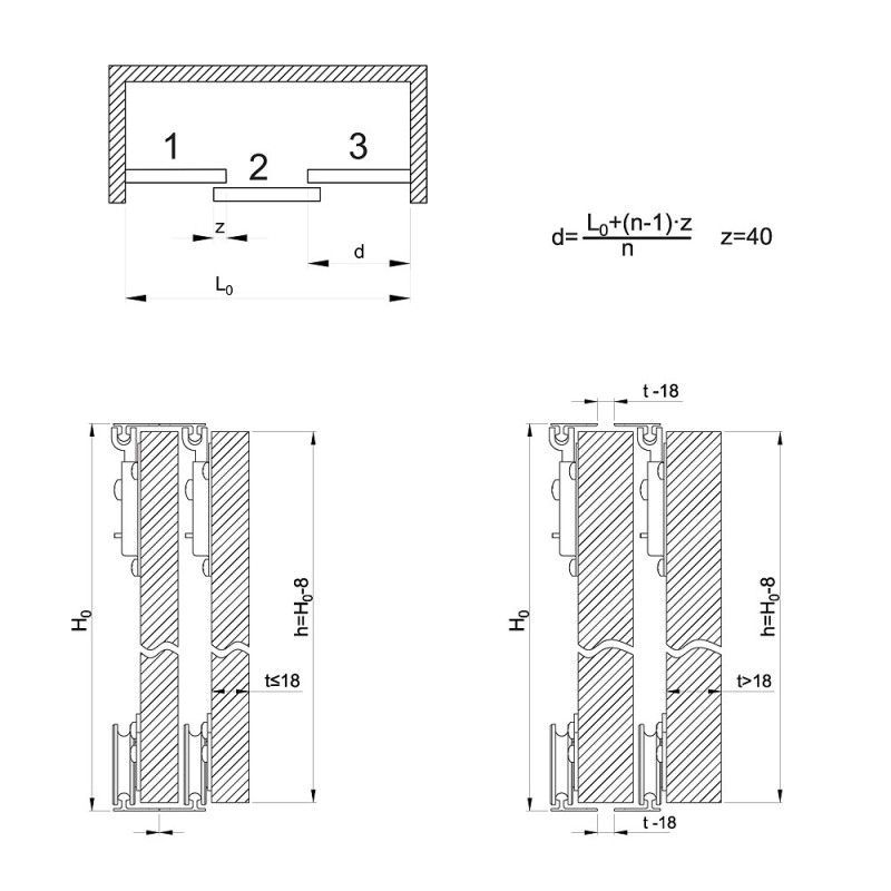 Schiebetürbeschlag SLID'UP 130, Laufschiene 300 cm, 3 Türen bis je 70 kg, für Schränk