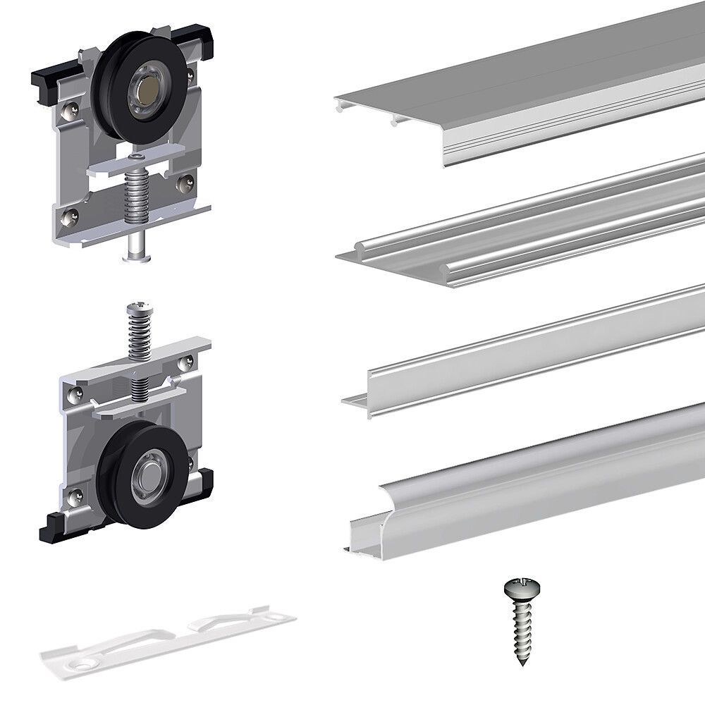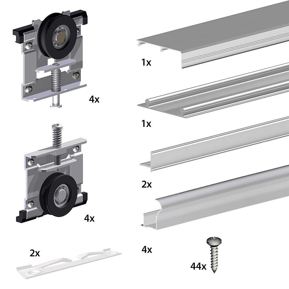Schiebetürbeschlag SLID'UP 220, 180 cm, 18 mm, 2 Türen bis 70 kg, silber, für Schränk