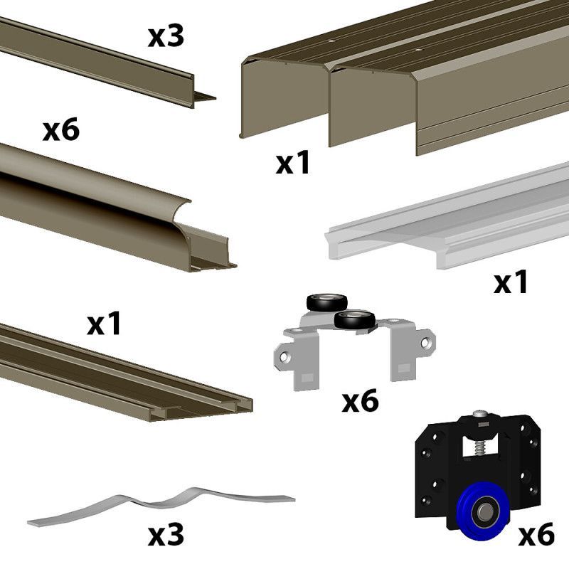 Schiebetürbeschlag SLID'UP 280, Laufschiene 300 cm, bronze für 3 Türen je 18 mm Türst