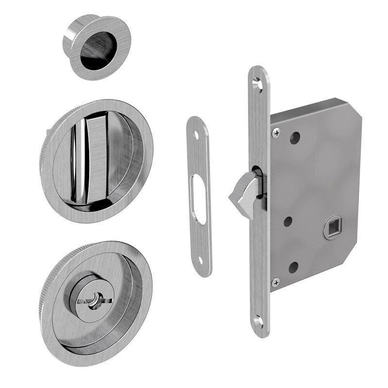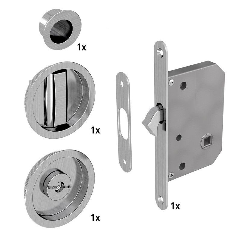 Schiebetürschloss WC-Schloss Set, rund, Nickel gebürstet