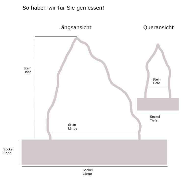 - Größe des Steins : Länge ca. 46 cm Höhe ca. 129 cm Tiefe ca. 16 cm - Größe des Steins inkl. Betonsockel : Höhe ca. 149 cm - Größe des Betonsockels : Länge ca. 80 cm Höhe ca. 20 cm Tiefe ca. 30 cm - Gewicht : ca. 170 kg - Färbung : grau / braun Farbliche veränderung möglich da ein Naturprodukt - Abholung ist auch möglich : Weststr. 107 / 32130 Enger / Mo-Fr 9- 18 Sa. 10-13 Uhr Infos Abhollager Weststr. 107 , 32130 Enger Tel. +49 (0) 5225-8623031