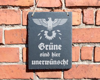 Schiefertafel "Grüne sind hier unerwünscht" #0135 Wehrmacht Politik Schild Eingang