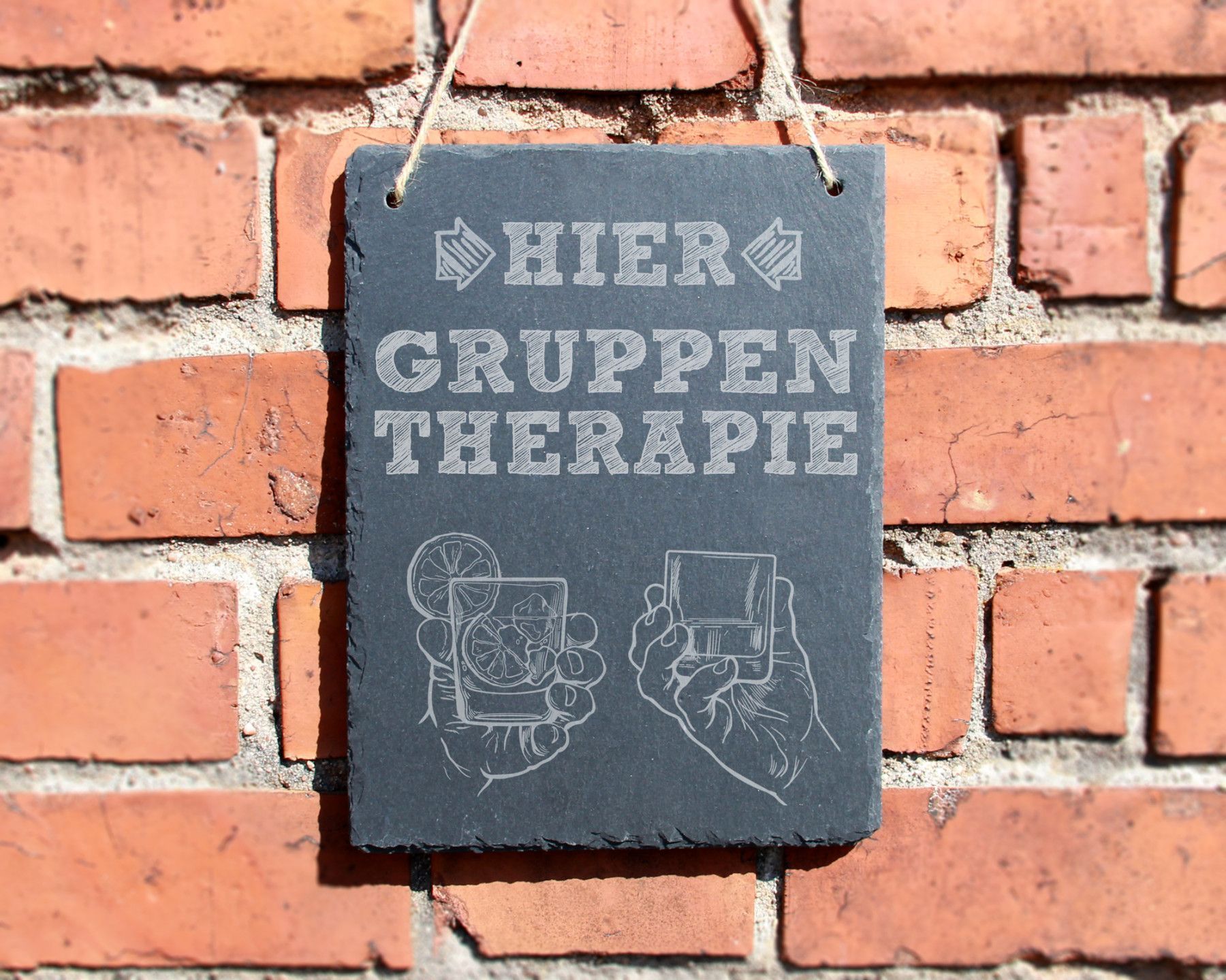 Schiefertafel "Hier: Gruppentherapie" #0012 Schild Kellerbar Saufen Bier trinken