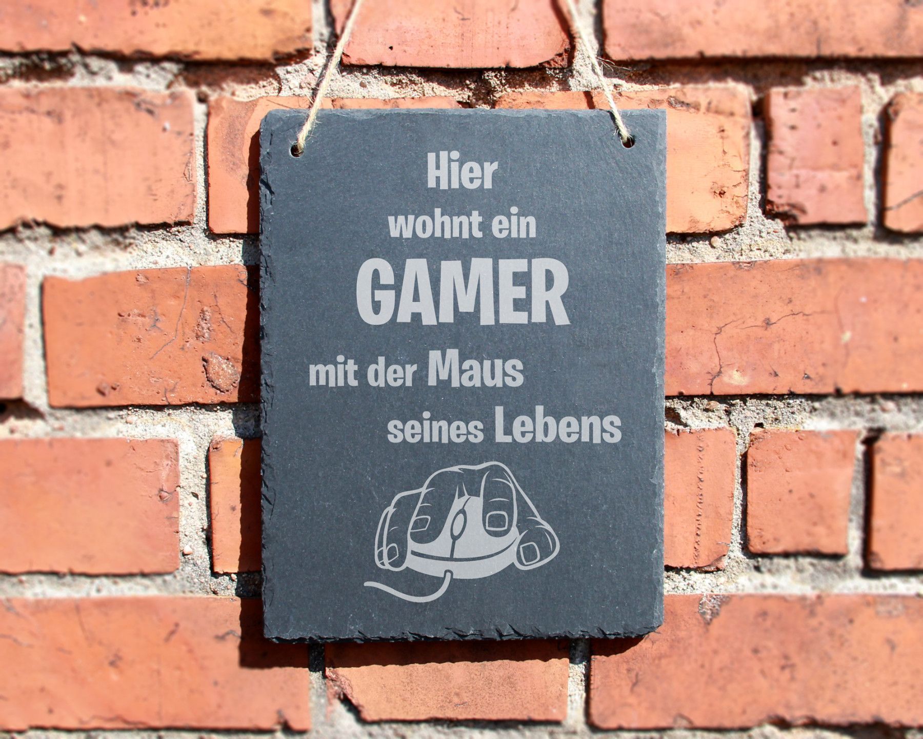 Schiefertafel "Hier wohnt ein Gamer" #0083 Schild Eingang Zocken