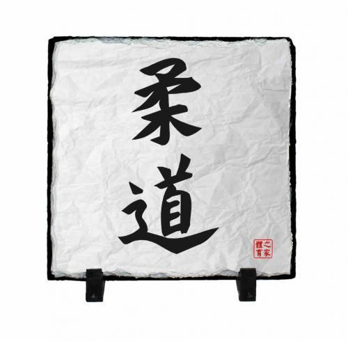 Ein Naturprodukt aus Schiefer bedruckt mit dem japanischen Schriftzeichen Judo. - Natürliche Oberflächenstruktur mit welligen, abfallenden Rändern - Jedes Stück ist ein Unikat in Maserung, Form und Facettenschliff, da es ein Naturprodukt ist.