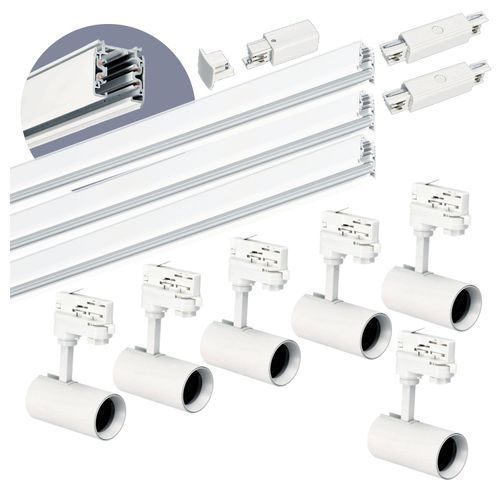 Schienensystem 6xSpots 3x1m Schiene Netzgerät Steckerabdeckung gerader Schalter
