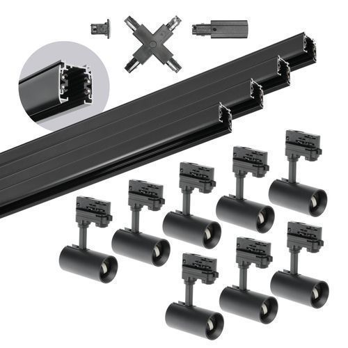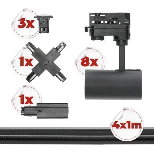 Schienensystem 8x GU10 Lampe 4x1m Schiene X-Verbinder Stromversorgung 3x Endkappe