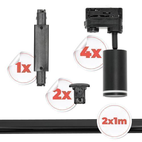 Schienensystem Komplett-Se 4x GU10 Lampe + 2x 1m Schiene + Schalter I Schwarz