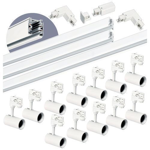 Schienensystem Komplett-Set 12x Lampe und 2x1m + 2m Schiene, Verbinder L Weiß