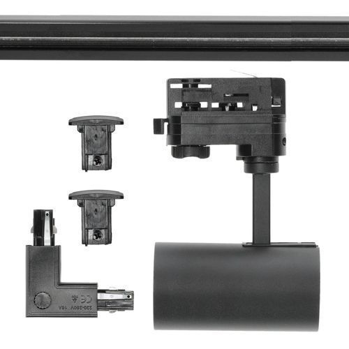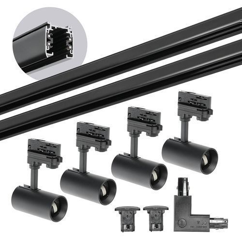 Schienensystem Komplett-Set 1m+1m, L rechts, 4x Lampe, 2x Kappe Schwarz