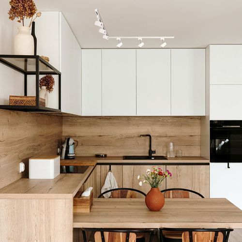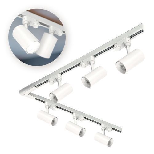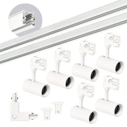 Schienensystem Komplett-Set 1m+1m, L rechts, 6x Lampe, 2x Sockel WEISS
