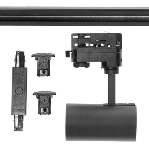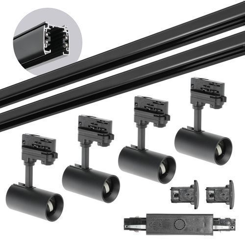 Schienensystem Komplett-Set 1m+1m Schiene, I ext., 4x Lampe, 2x Sockel Schwarz