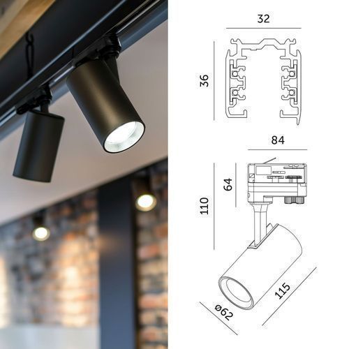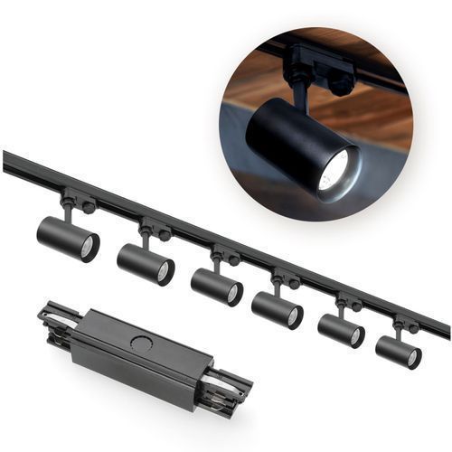 Schienensystem Komplett-Set 1m+1m Schiene, I ext., 6x Lampe, 2x Stecker Schwarz