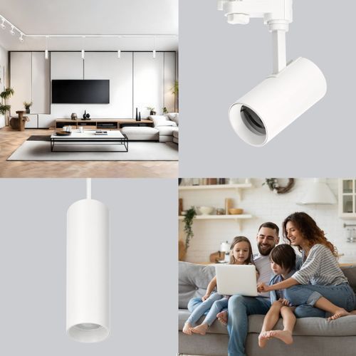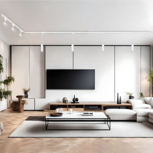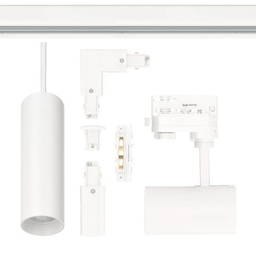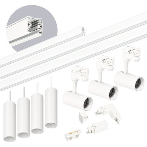 Schienensystem Komplett-Set 1m+2m+2m Schiene, 7x Lampe, interner Schalter + L WEISS