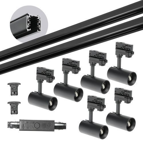 Schienensystem Komplett-Set 2m+2m Schiene, Schalter 'I' 6xLampe, 2xStecker Schwarz
