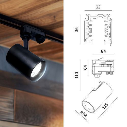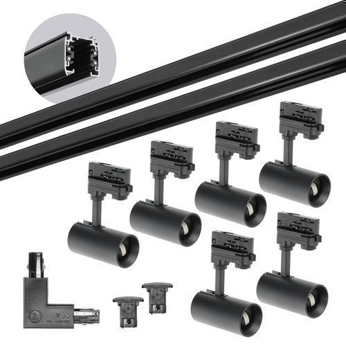 Schienensystem Komplett-Set 2m+2m Schiene, Schalter 'L', 6x Lampe, 2x Kappe Schwarz