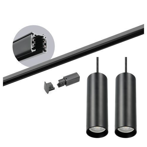 Schienensystem Komplett-Set 2m Schiene, 2x Pendelleuchte Schwarz