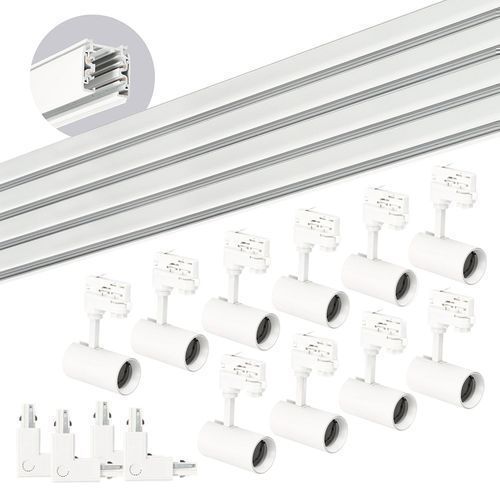 Schienensystem Komplett-Set 4x 1m Schiene, 4x L-Verbinder, 10x GU10 Lampe WEISS