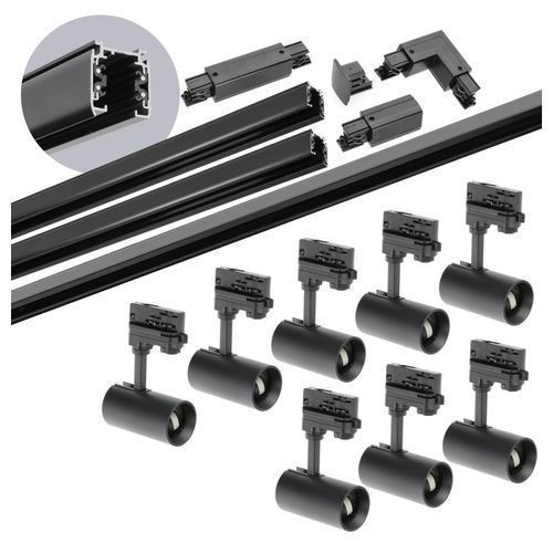 Schienensystem Komplett-Set 8x GU10 Spots 1m + 1m + 2m Schiene Schalter I + L Schwarz