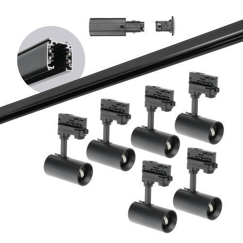 Schienensystem Komplett-Set mit 6x Lampe 2m Schiene Stromversorgung Kappe Schwarz