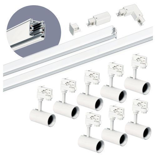 Schienensystem Komplett-Set mit 8x GU10 Spots und 1m + 2m Schiene + Schalter L WEISS