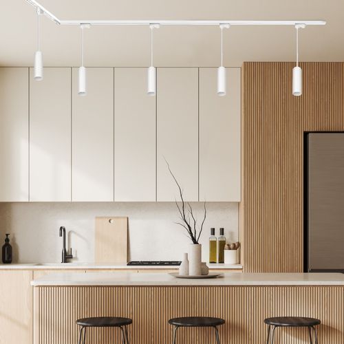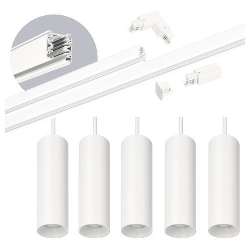 Schienensystem Komplett-Set Schiene 1m+2m, 5x Pendelleuchte, Schalter L WEISS