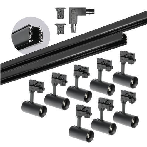 Schienensystem Komplett-Set Schwarz 1m+2m Schiene, 8x GU10 Reflektor, L-Verbinder