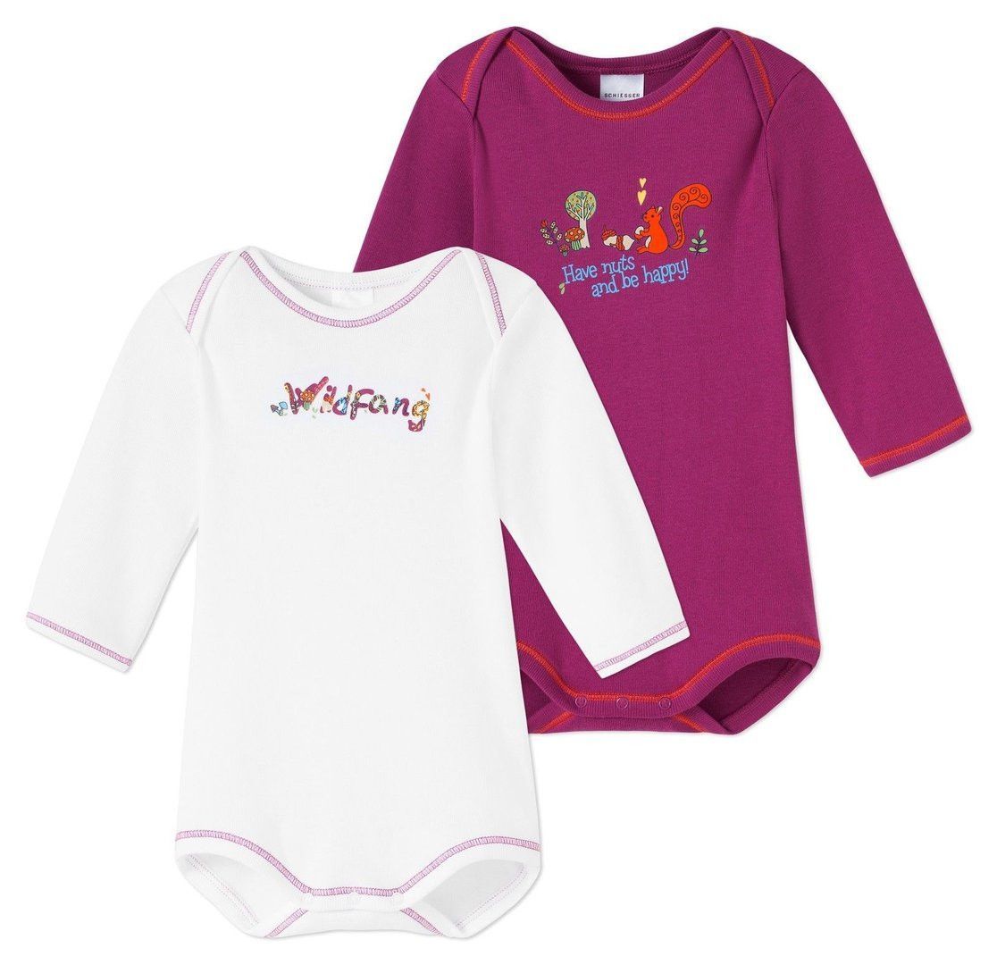 **Schiesser** Doppelpackung Babybody´s Langarm Farbe Weiss bedruckt und Beere bedruckt