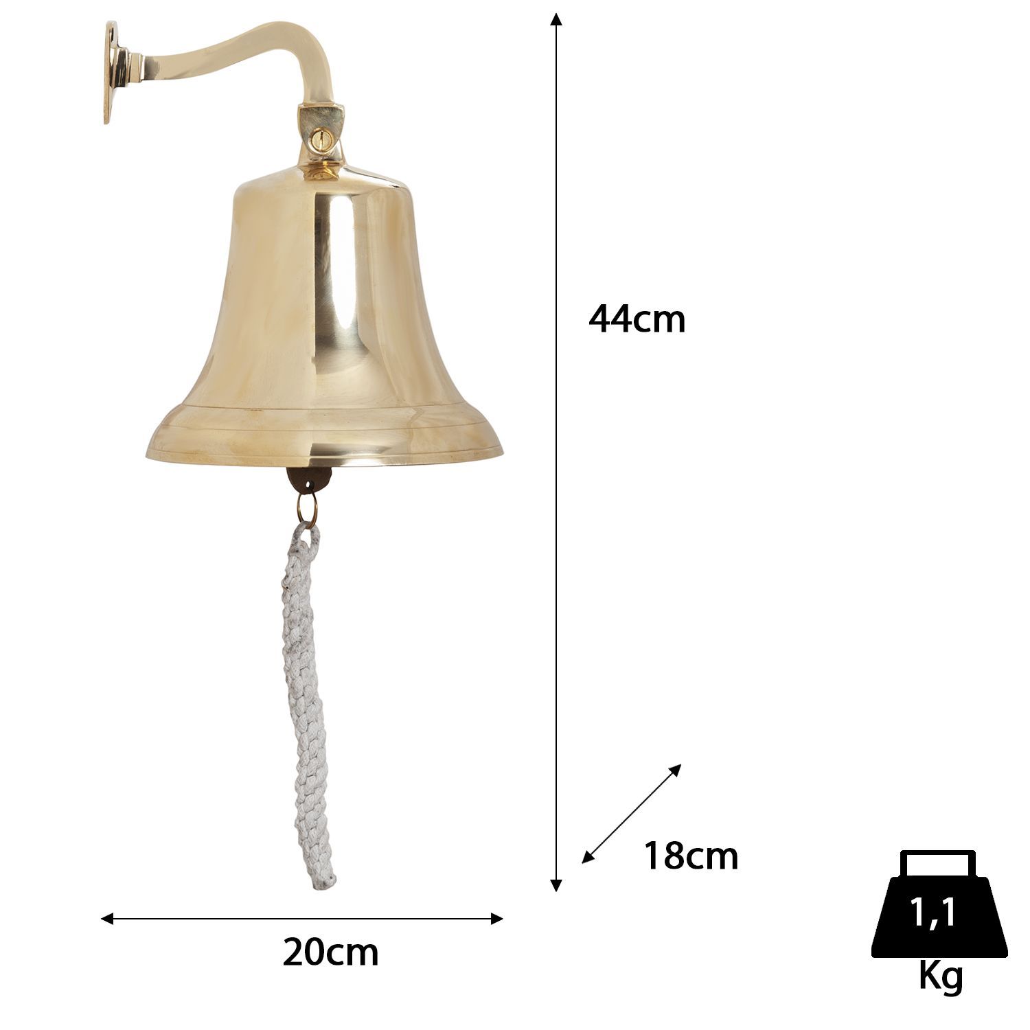 Schiffsglocke aus Messing zum Aufhängen 44 x 20 x 18 cm - maritime Glocke mit Wandhal