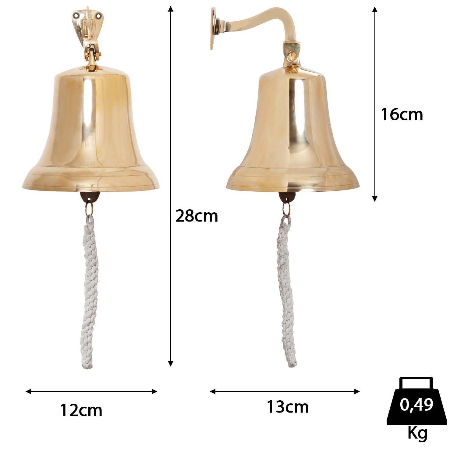 Schiffsglocke Messing 18 cm mit Wandhalterung
