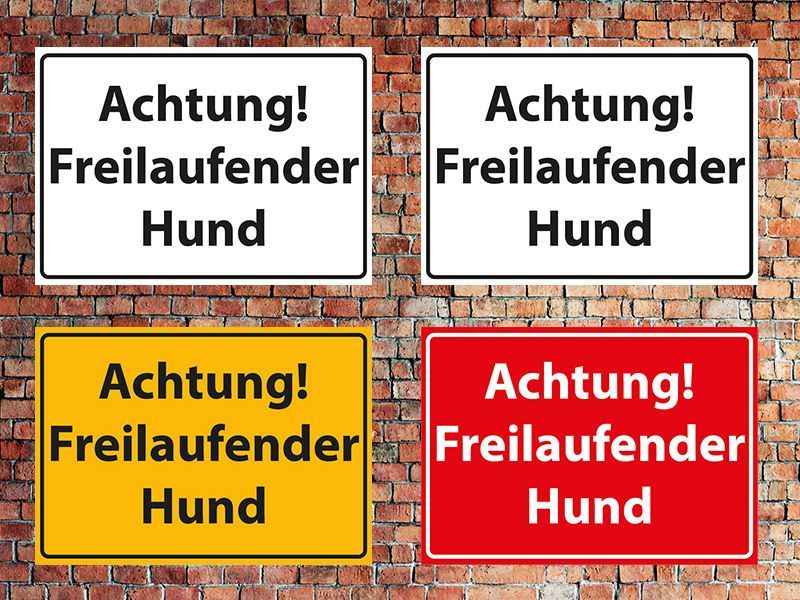 Schild Aufkleber Aludibond Auswahl SAchtung Freilaufender Hund Details: NEU Freie Auswahl Digitaldruck Aufkleber 3,2 mm Hartschaumplatte weiß 3,2 mm Hartschaumplatte gelb 3,2 mm Hartschaumplatte rot 2 mm Aludibond Schild Hochwertiger UV-Druck Wasserfest witterungsbeständig UV beständig Made in Germa