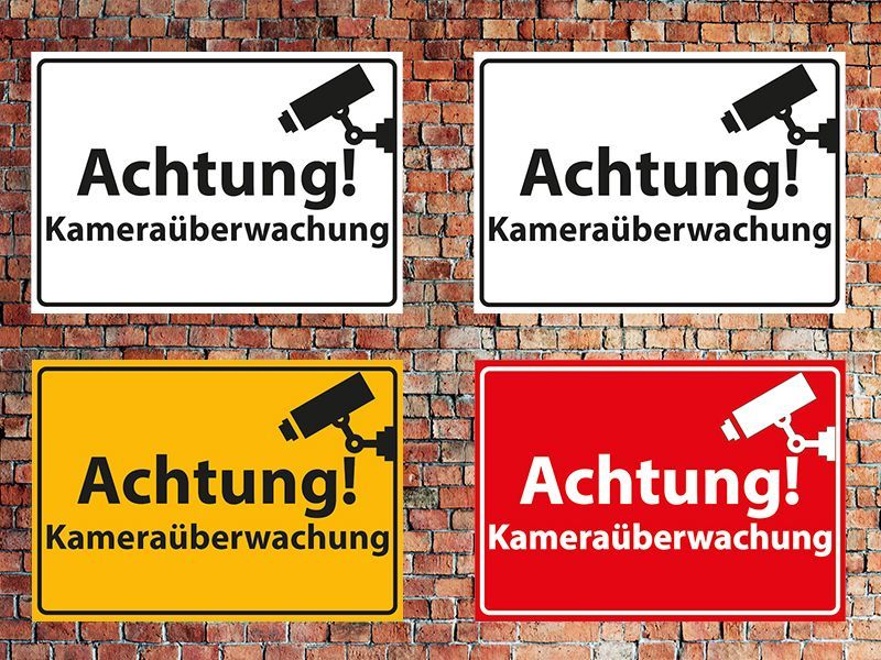 Schild Aufkleber Aludibond Auswahl Achtung Kameraüberwachung Details: NEU Freie Auswahl Digitaldruck Aufkleber 3,2 mm Hartschaumplatte weiß 3,2 mm Hartschaumplatte gelb 3,2 mm Hartschaumplatte rot 2 mm Aludibond Schild Hochwertiger UV-Druck Wasserfest witterungsbeständig UV beständig Made in Germany