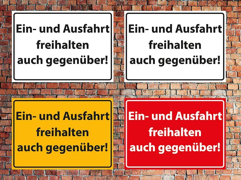 Schild Aufkleber Alu Dibond Auswahl Ein- u. Ausfahrt freihalten auch gegenüber