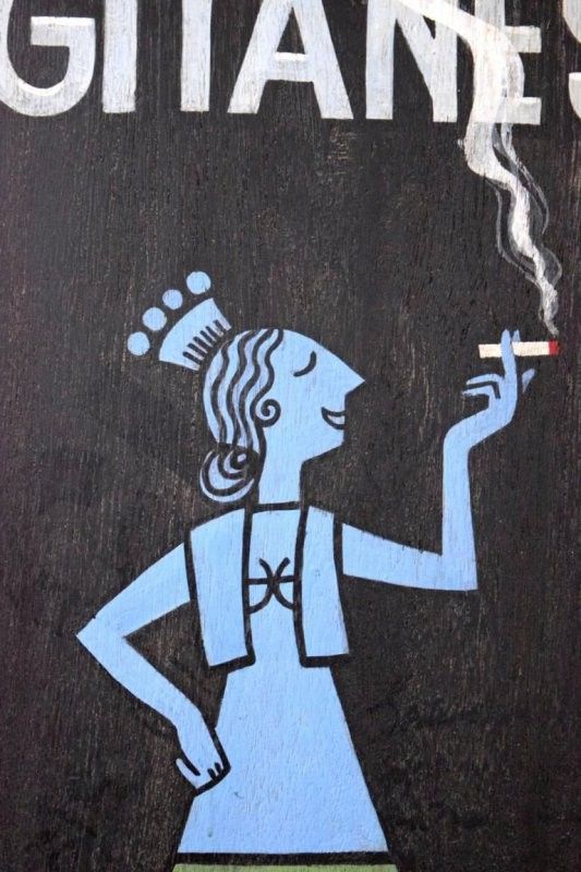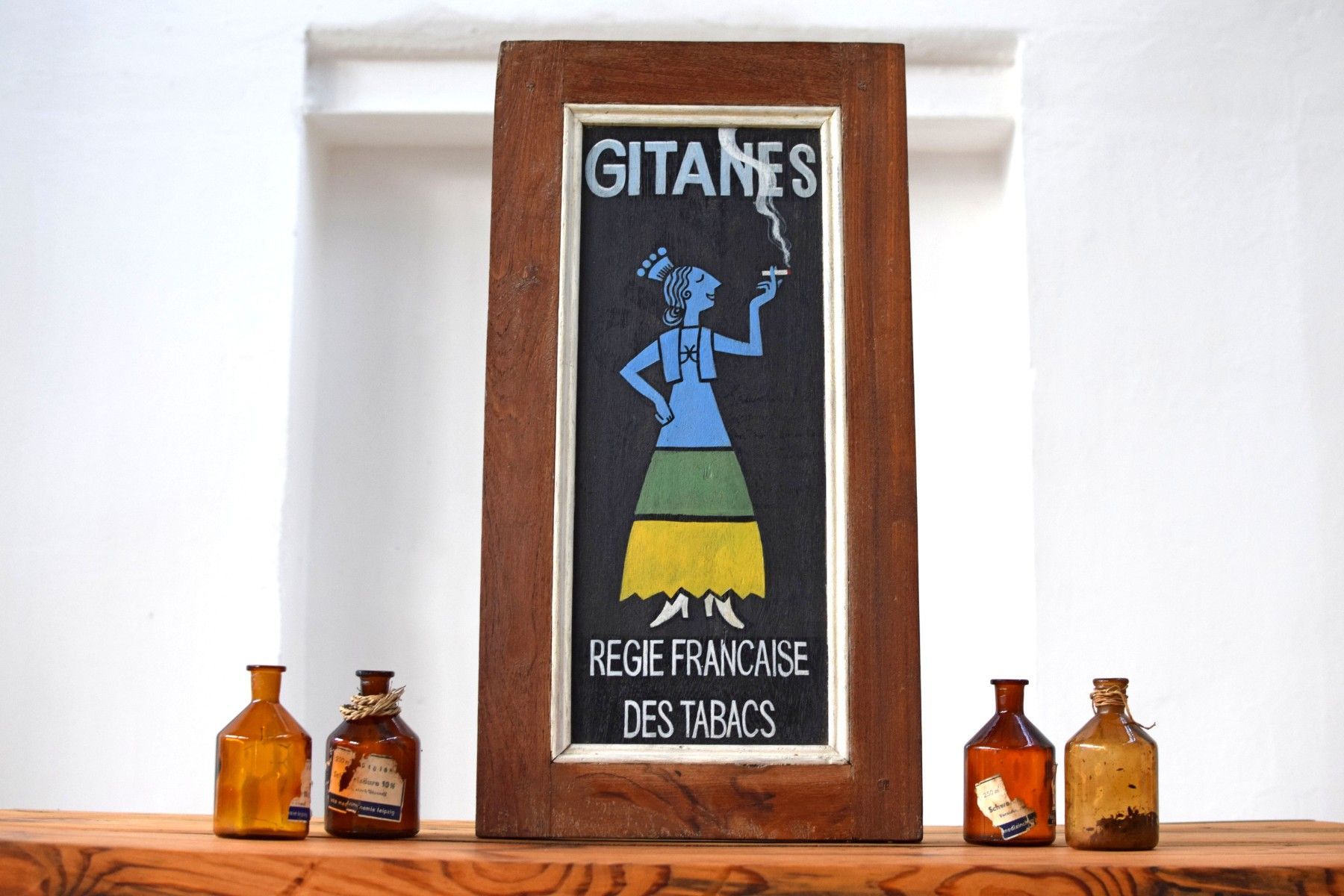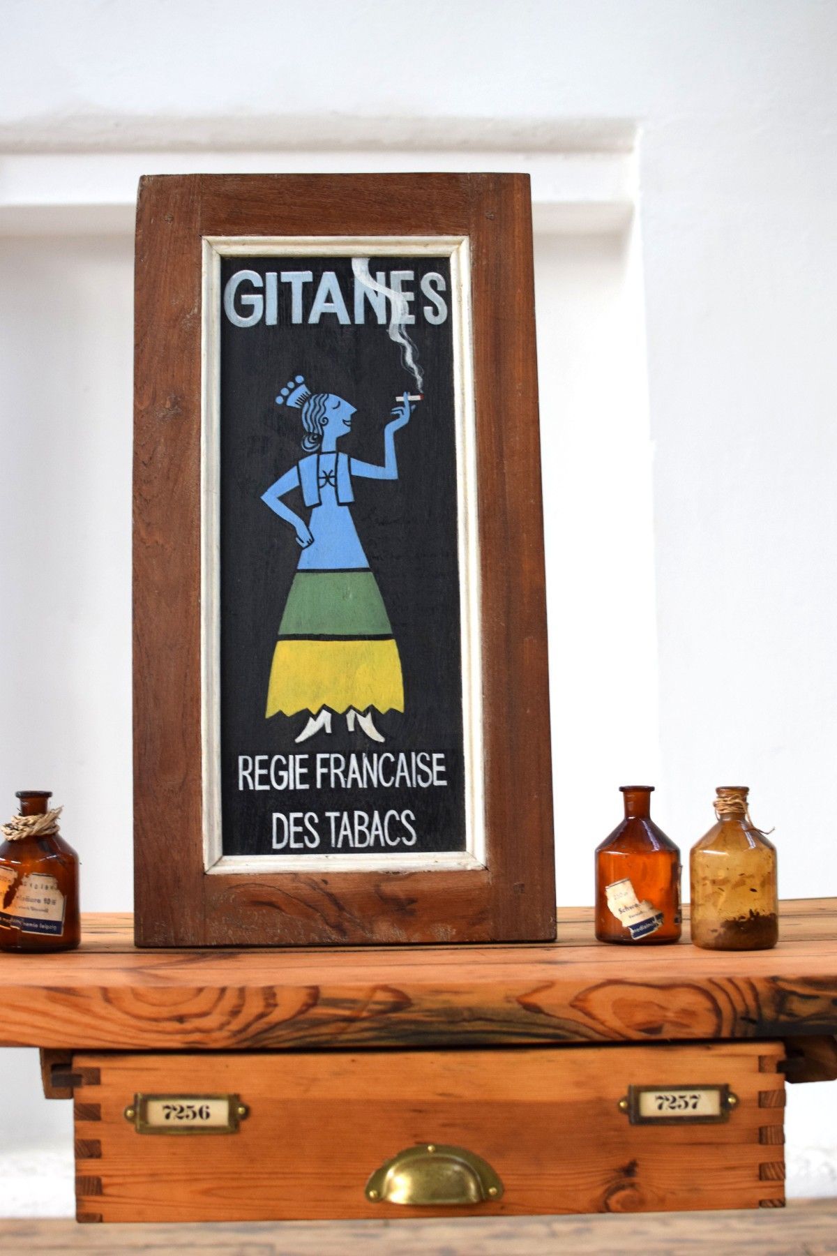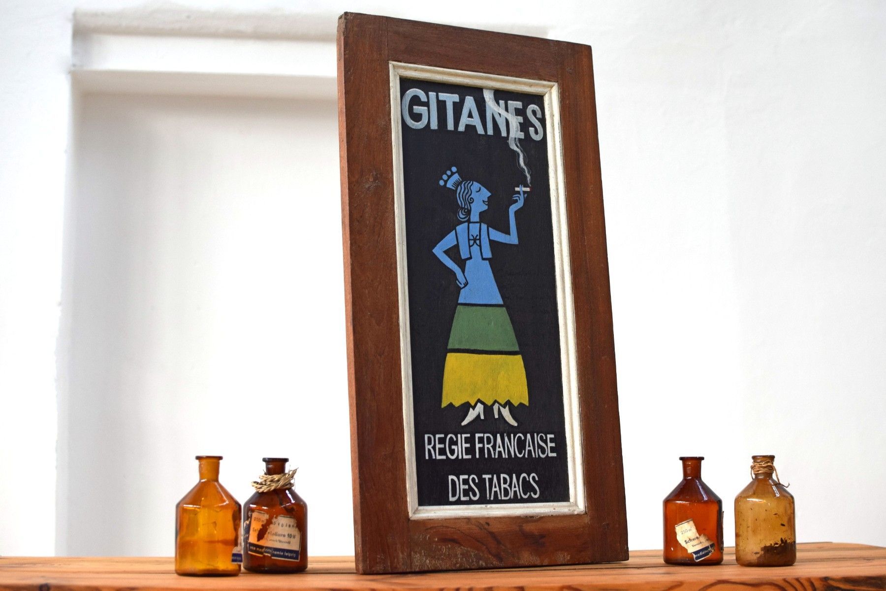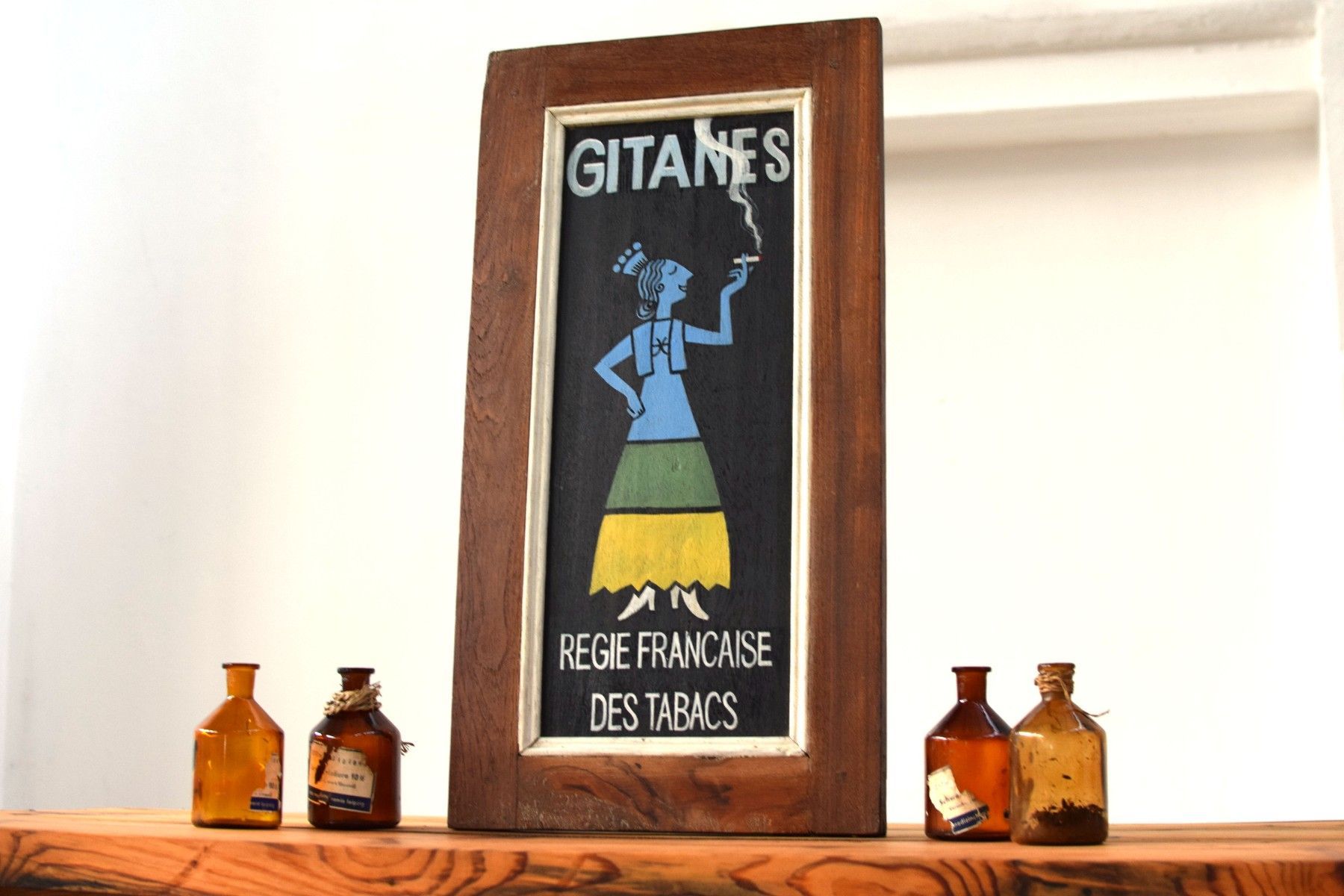Schild handgemalt Gitanes Zigaretten Reklame Antik Werbung Alt Teakholz Vintage Deko