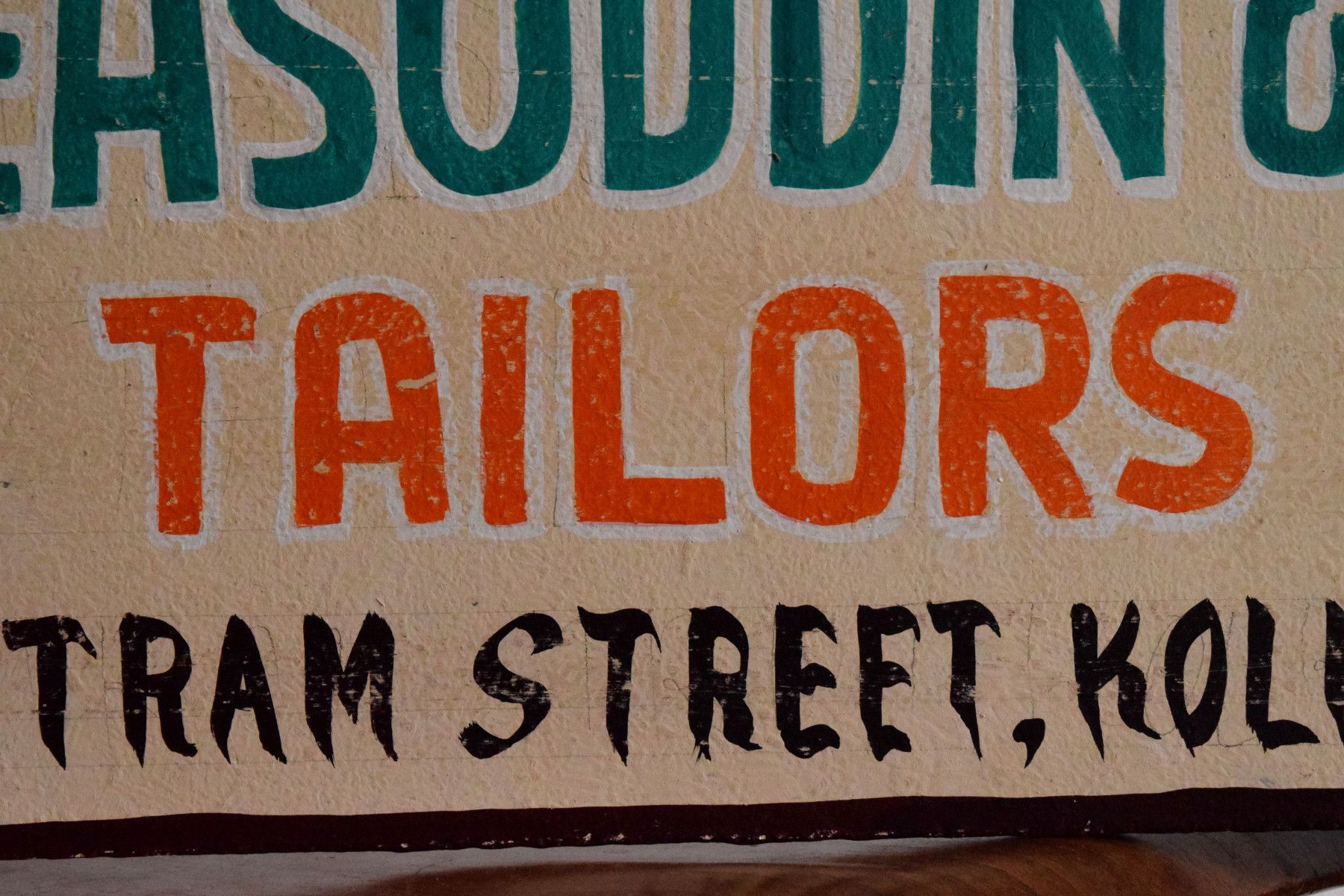 Schild handgemalt Tailor Calcutta Vintage Schneider Indien Reklame Werbung 25 x 75cm