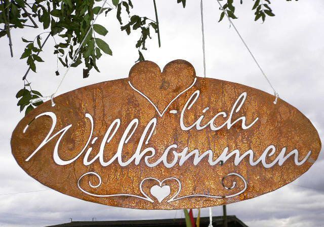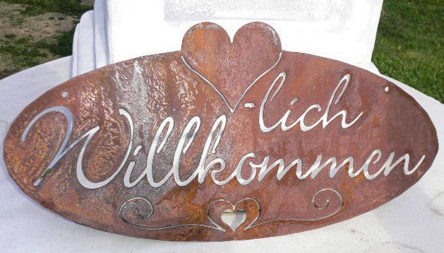 Schild Herzlich Willkommen 55x29cm Edelrost Rost Gartendeko Wandhänger Türdekoration
