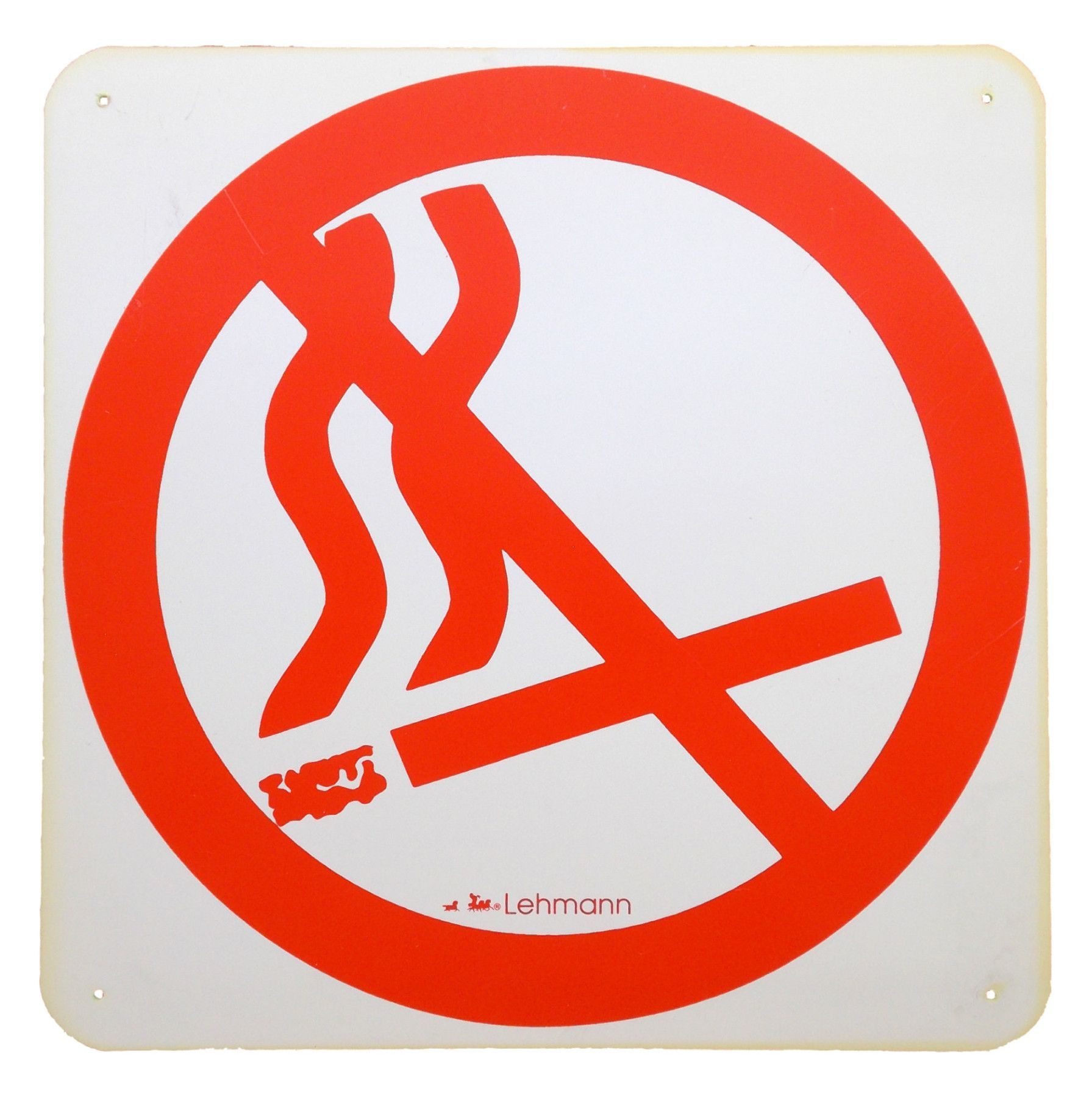 Hinweisschild · Schild Rauchen verboten · Größe: ca. 25 x 25 cm · vier vorgeborte Löcher zur Aufhängung · Material: Kunststoff Bitte beachten! Das Schild hat einen Farbfehler sowie leichte oberflächliche Kratzer. Siehe Bilder. Bildschirmfarben können abweichen.