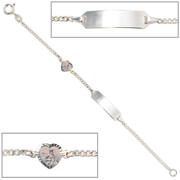 JOBO Schildband Schutzengel 925 Sterling Silber 14 cm Gravur ID Armband Federring