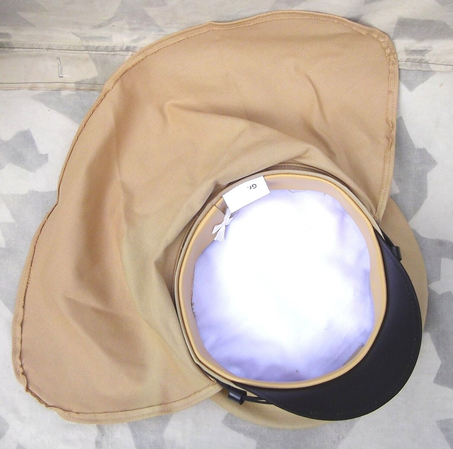 Schirmmütze Expeditionskorps Originalgetreue Neuanfertigung einer Schirmmütze des Ostasienkorps. Wurde von den deutschen Schutztruppen bei der Niederschlagung des Boxeraufstandes getragen. Sandfarbene Mütze mit abnehmbarem Nackenschutz. Mit Reichs-Kokarde und Mützenriemen aus Leder. Material: 100% B