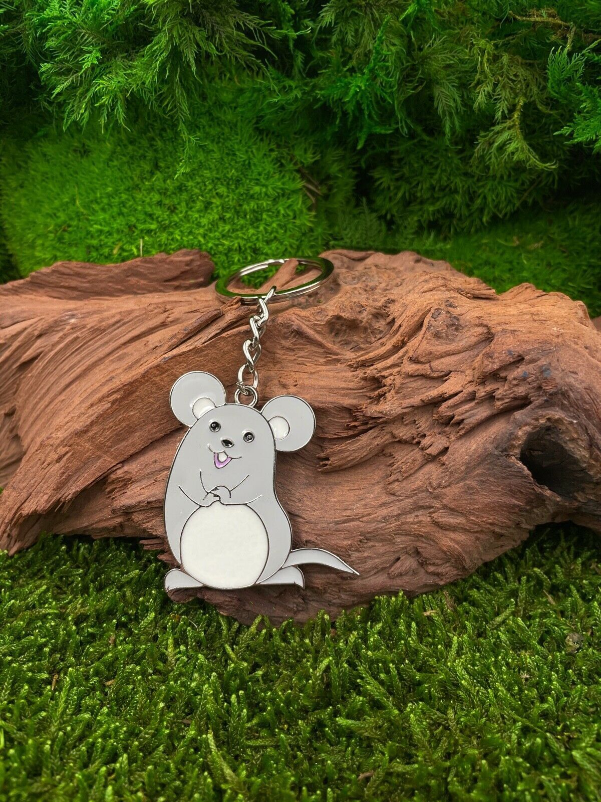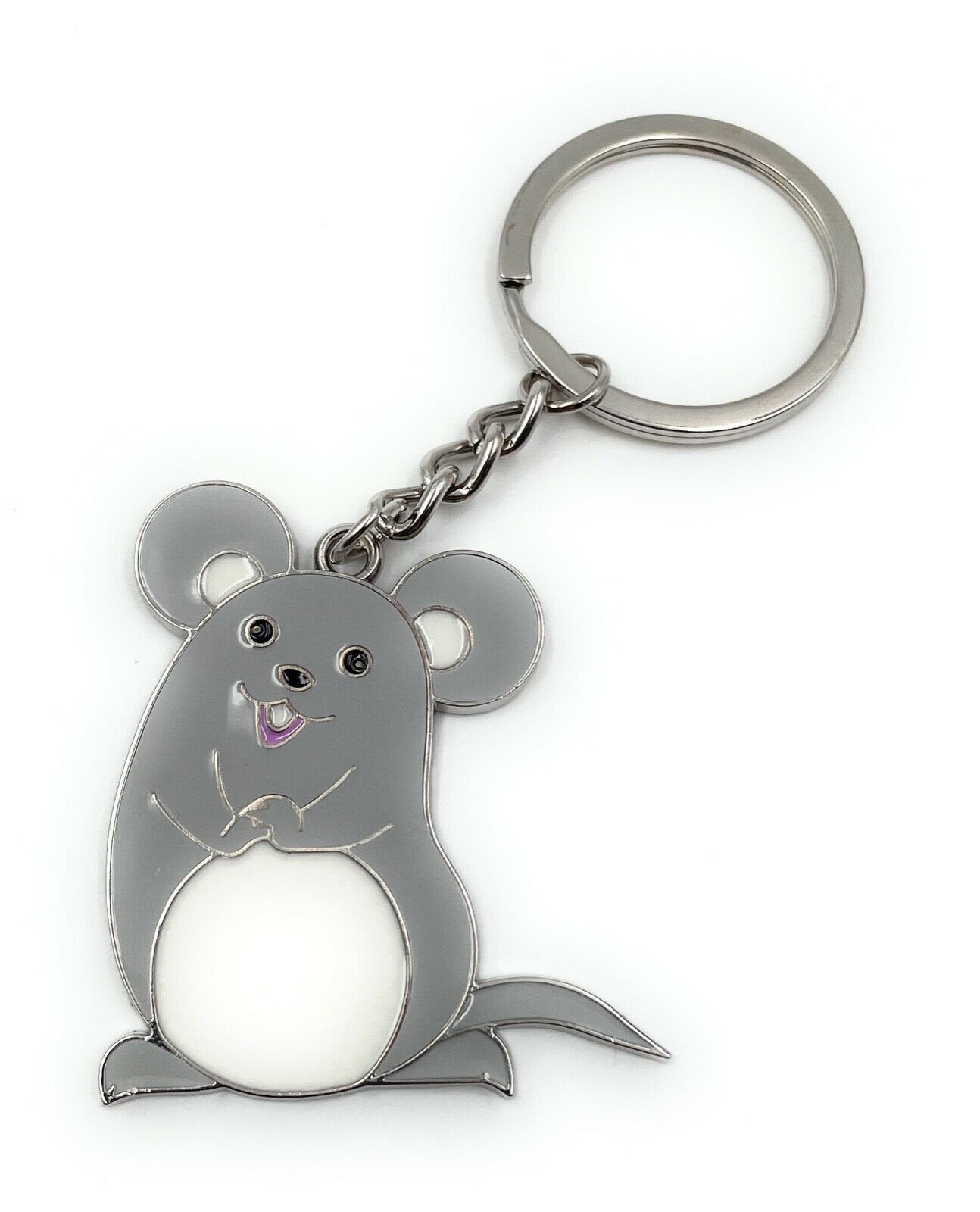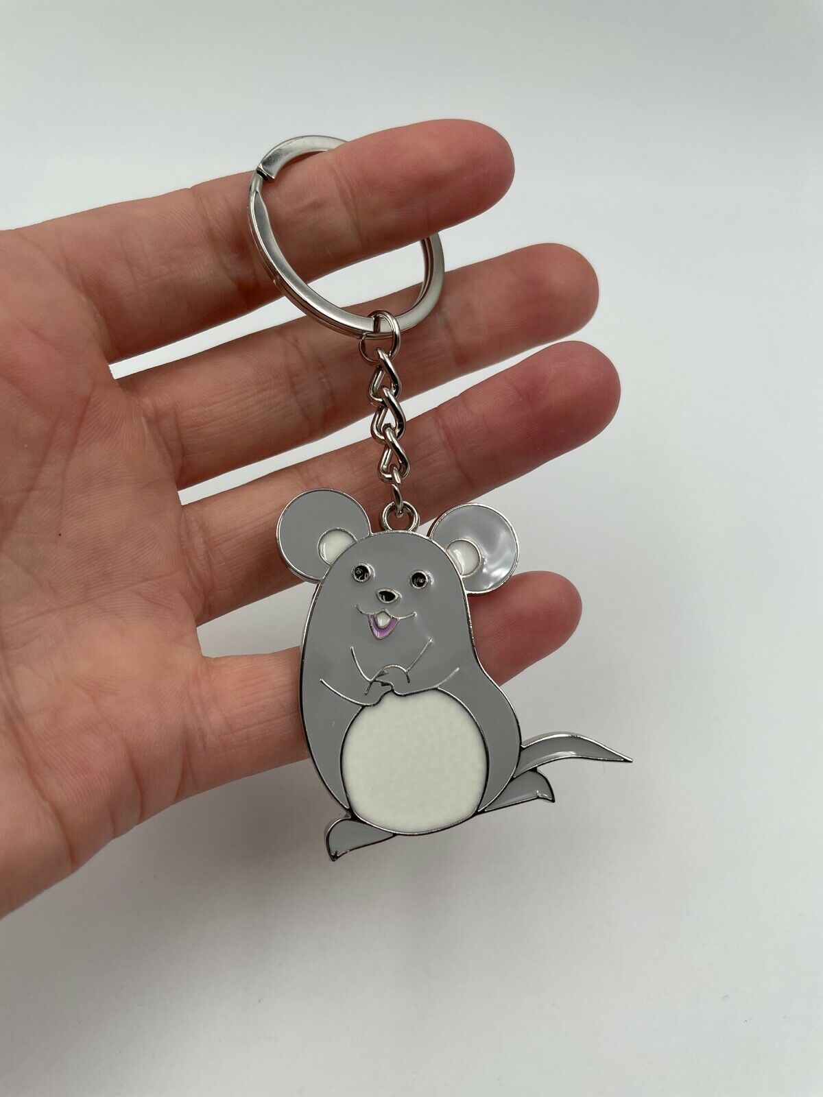 Schlüsselanhänger Graue Maus dick niedlich Silber Anhänger Keychain