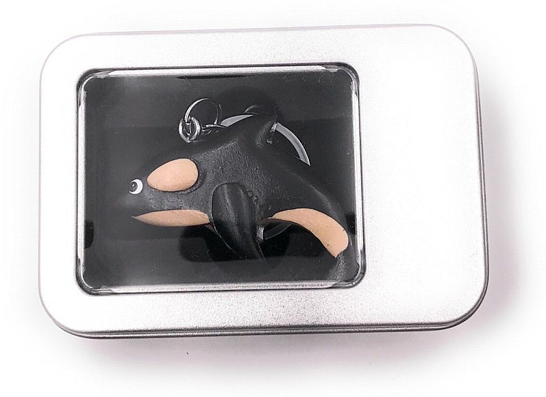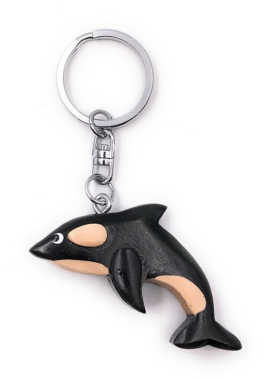 Schlüsselanhänger Holz Delfin Delphin schwarz Pottwal Säugetier in Geschenkbox